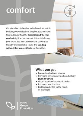 Caring for your comfort and well-being in the building where you work is for Skanska - the developer and contractor of this facility - a priority.