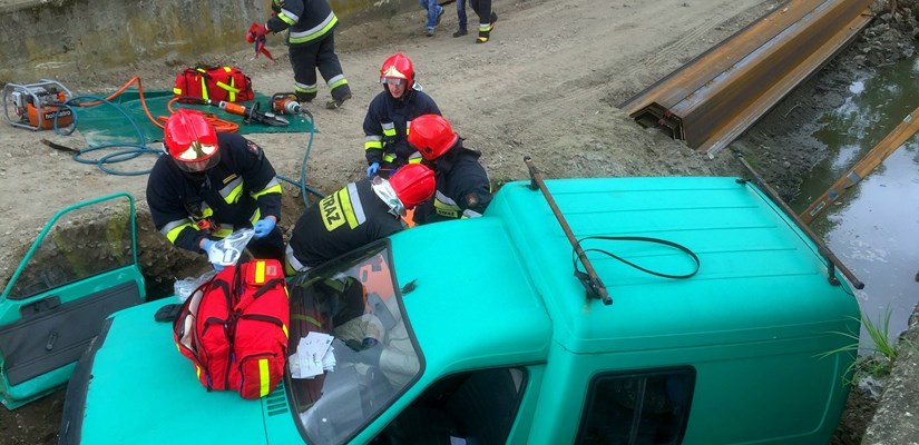W poniedziałek, o godzinie 10.00 na projekcie przebudowy Kanału Raduni w Pruszczu Gdańskim zaaranżowano wypadek samochodowy, w którym pojazd poruszający się ul. Wojska Polskiego wpadł do kanału tuż przed skrzyżowaniem z ul. Raciborskiego. W rolę poszkodowanego kierowcy wcielił się jeden z pracowników Skanska. Akcję ratowniczą rozpoczęli pracownicy budowy, którzy zaraz po sprawdzeniu czynności życiowych poszkodowanych wezwali pomoc. Po kilku minutach na miejsce wypadku dotarły na sygnale dwa zastępy straży pożarnej, które niezwłocznie przystąpiły do uwolnienia poszkodowanych z pojazdu. Strażacy rozcięli samochód w celu wyciągnięcia rannych, po czym udzielili im pierwszej pomocy. Następnie przy użyciu ciężkiego sprzętu podjęto działania mające na celu wyciągnięcie pojazdu z kanału. Pracownicy Jednostki Ratowniczo-Gaśniczej przeprowadzili także szkolenie z zakresu udzielania pierwszej pomocy. Dzięki temu pracownicy budowy zyskali dodatkową wiedzę na temat tego, jak właściwie postępować w sytuacjach zagrożenia życia i zdrowia drugiego człowieka. Pokaz przebiegu akcji ratowniczej okazał się widowiskowy i przede wszystkim wyglądał bardzo realistycznie, co przyciągnęło liczne grono obserwatorów.
