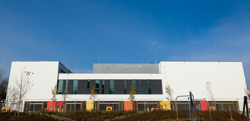 – Na parterze zbudowaliśmy sześciooddziałowe przedszkole z osobnym wejściem dla 150 dzieci. Jest również sala zabaw, jadalnia, kuchnia, pomieszczenia opiekunów, pielęgniarki, administracyjne oraz wózkownia, szatnia i klub rodzica. Na pierwszym piętrze znajduje się biblioteka, klub seniora, klub mam, sala wielofunkcyjna, sale zajęć oraz szatnia. Drugie piętro zajmuje kawiarenka z tarasem, zaś na zewnątrz budynku znajdują się trzy place zabaw wydzielone niską zielenią rekreacyjną i wyposażone w piaskownice, domki, bujaki i zjeżdżalnie – wymienia Marcin Bargłowski, kierownik budowy, Skanska.