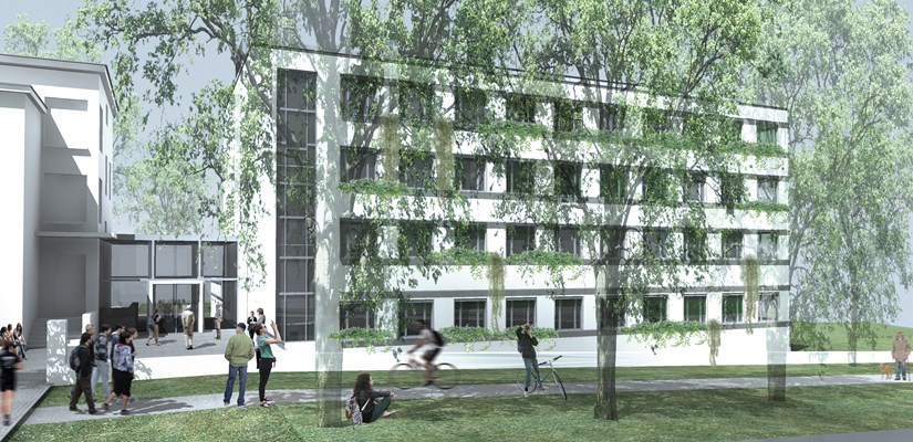 Nowy, czterokondygnacyjny gmach wydziału Ogrodnictwa i Architektury Krajobrazu widoczny będzie od ulicy Botanicznej. Z Kolegium Zembala połączony zostanie szklanym łącznikiem.