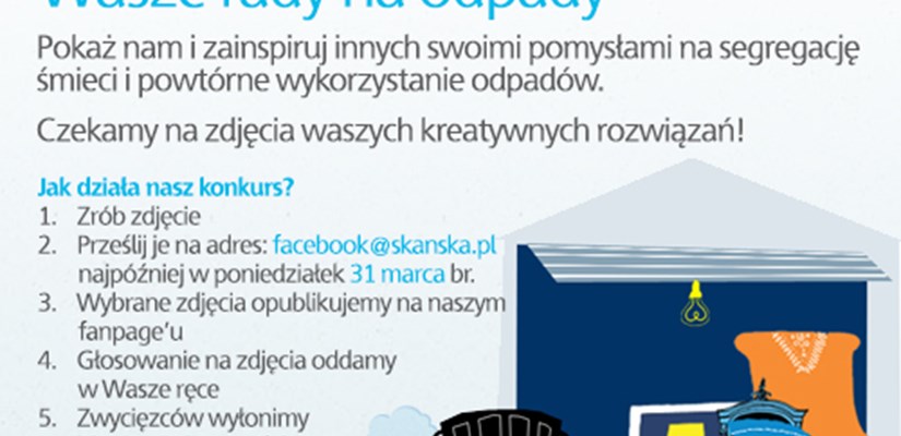 Aby wziąć udział w konkursie, wystarczy uwiecznić za pomocą zdjęcia swój pomysł na segregację lub wtórne wykorzystanie odpadów. Zdjęcia należy wysyłać na adres: