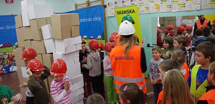W trakcie spotkań, wraz z policją uczymy dzieci, jak bezpiecznie przechodzić przez jezdnię, a także jak zachowywać się w sąsiedztwie placu budowy. Rozdajemy maluchom odblaski w kształcie maszyn budowlanych, odblaskowe worki na buty oraz książeczki „Mój mały kodeks drogowy”, zawierające informacje na temat ruchu drogowego, które poprzez zabawę uczą, jak radzić sobie z zagrożeniami na drodze.