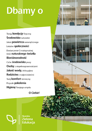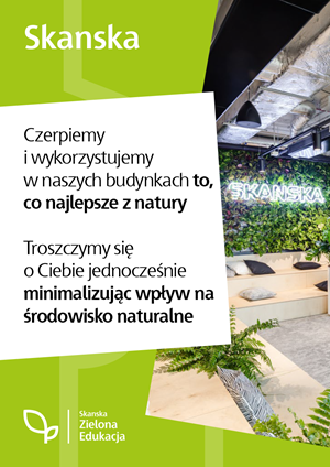 Troska o Twój komfort i samopoczucie w budynku w którym pracujesz jest dla Skanska – dewelopera i wykonawcy tego obiektu - priorytetem.